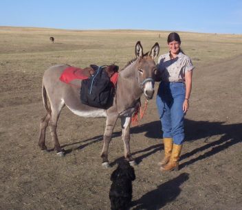 | abby,marna,donkey,hike,pack |