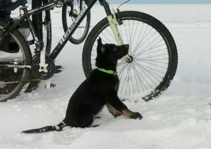 | german shepherd dogs puppy bicycle running springer attachement |